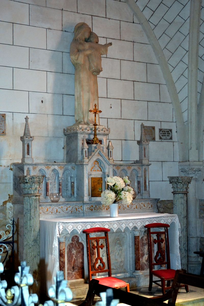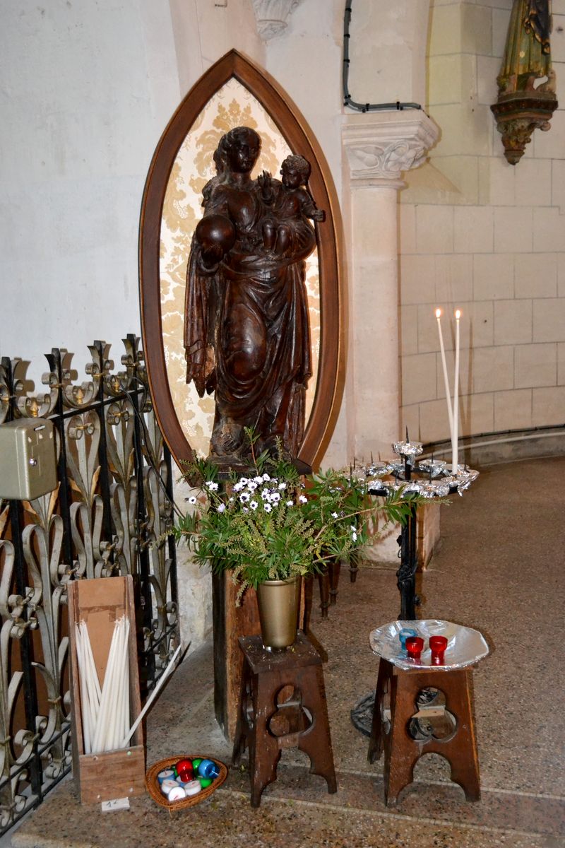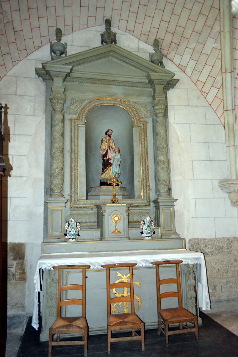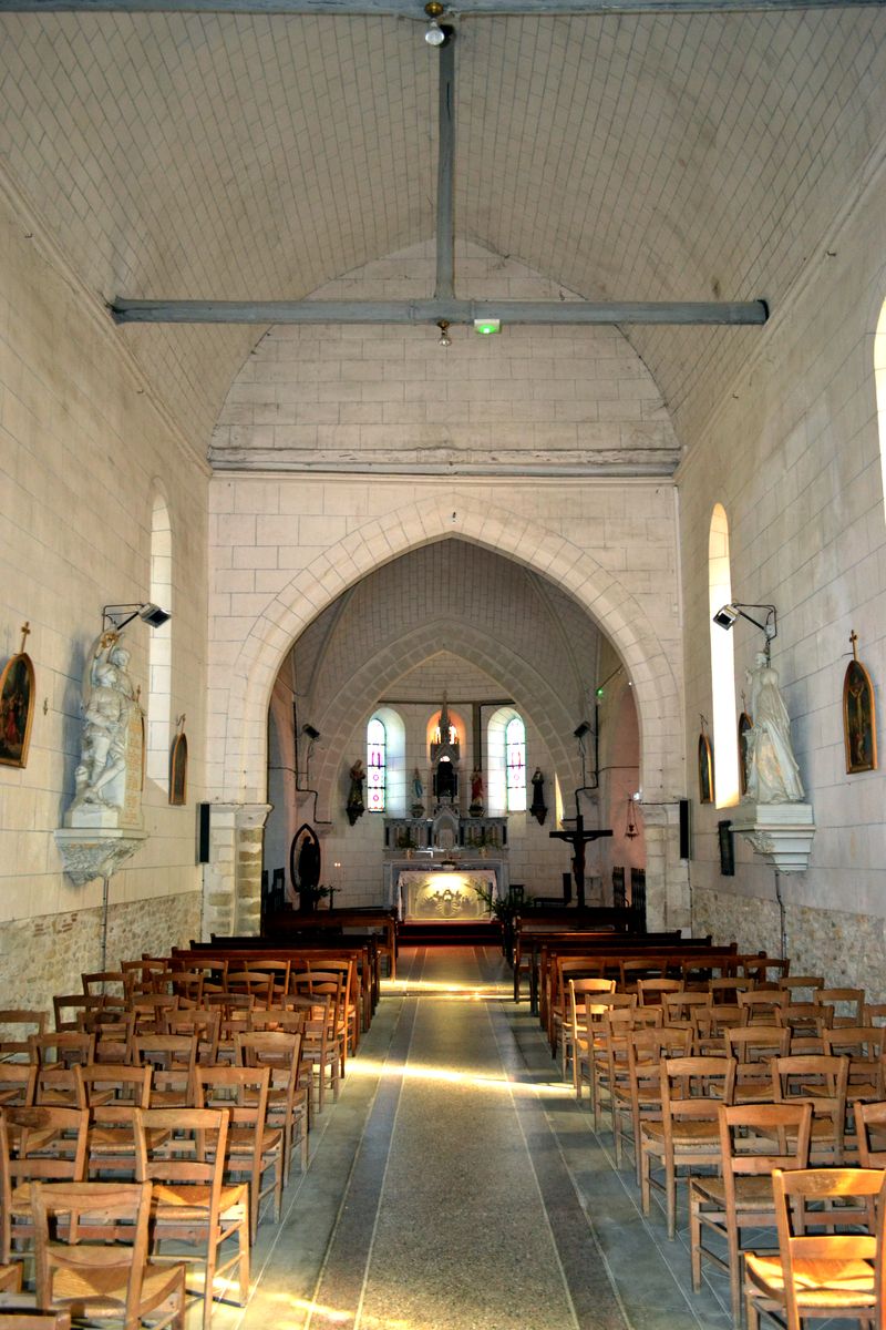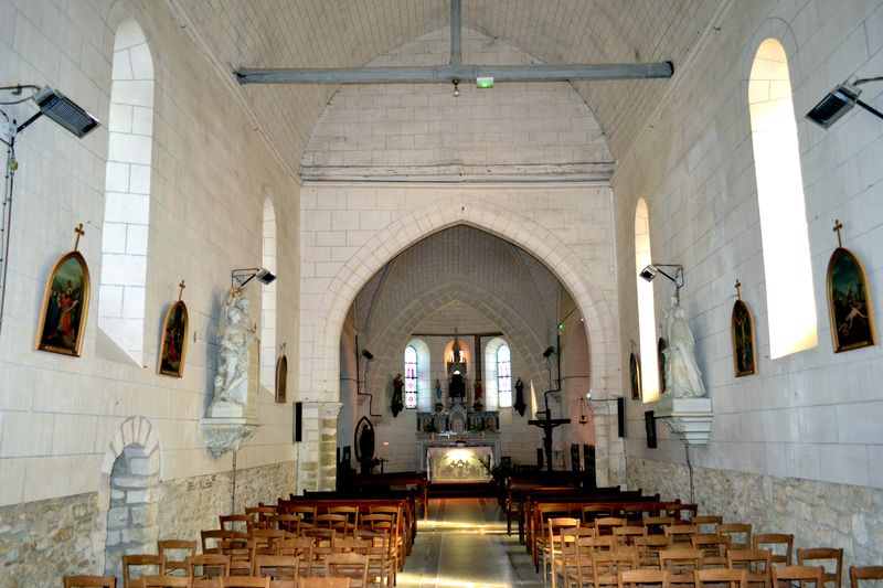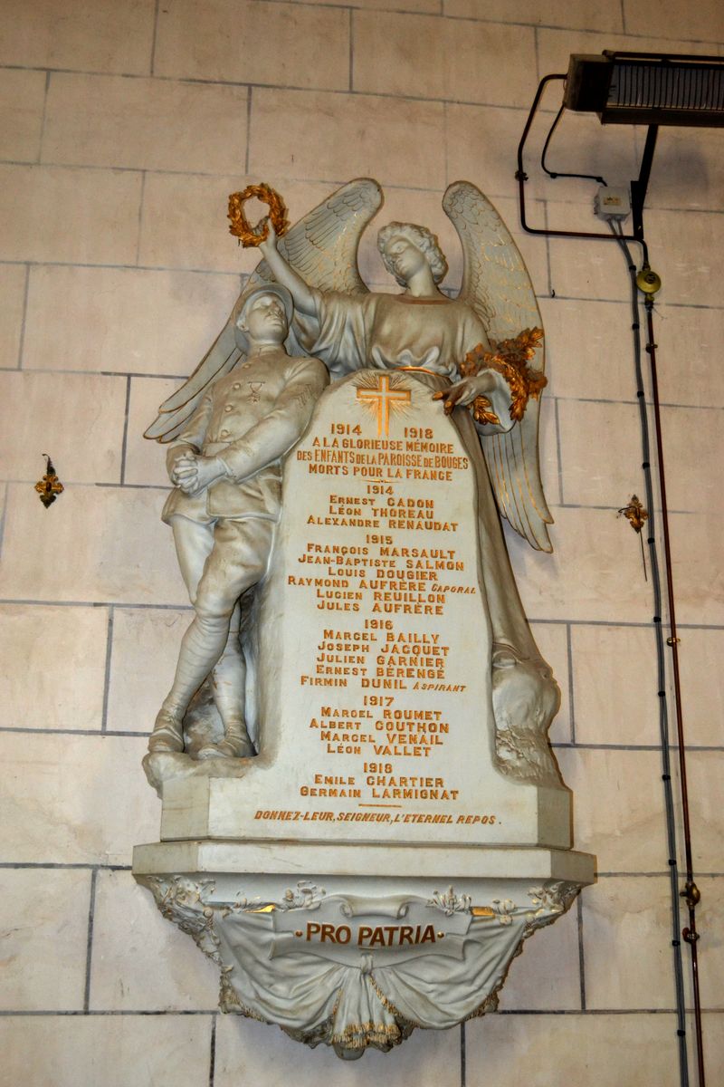 L’église servait aussi à Bretagne à partir de 1825 et à Sainte Colombe à partir de 1802. Ces deux communes étaient dépourvues d’église et de cimetière et étaient rattachées à la paroisse de Bouges. Dans le choeur se trouvent également de gauche à droite les statues de Sainte Solange, Notre Dame de Lourdes, le Sacré Coeur et Saint Antoine. En 1863, de gros travaux de toiture ont été exécutés (remplacement des tuiles par des ardoises) et reconstruction de la chapelle nord. La construction de la sacristie actuelle a été faite aux frais de la commune et inaugurée le 30 juillet 1870. En 1877, la fabrique a acheté le Chemin de Croix (huiles sur toiles style gothique.) Les peintures et garnitures de l’autel Saint Joseph ont été exécutées en 1913. Le retable date, lui, du 18 ème siècle.