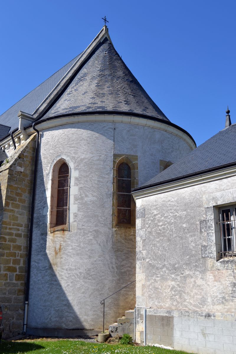 La date de construction de l’église de Bouges le Château n’est pas connue précisément, mais en 1218 elle est déjà citée. Elle relevait de l’abbaye de Saint Gildas. C’était sans doute un bâtiment rectangulaire à l’origine. L’église a été remaniée à partir de 1735 où le porche et le clocher avec son escalier ont été ajoutés. La chapelle nord (St Joseph actuel) a été construite en premier, elle servait aussi de sacristie. La chapelle sud a été construite vers 1845 (Ste Vierge actuelle). L’autel actuel a été érigé en 1903 par l’Abbé Labourbe. Ensuite des travaux ont suivi : le choeur vers 1854, le sol, le carrelage etc ... Deux autels dédiés à Saint Mamert et la Sainte Vierge qui obstruaient l’entrée du choeur ont été enlevés. Des croisées ont été ouvertes coté nord de la nef.